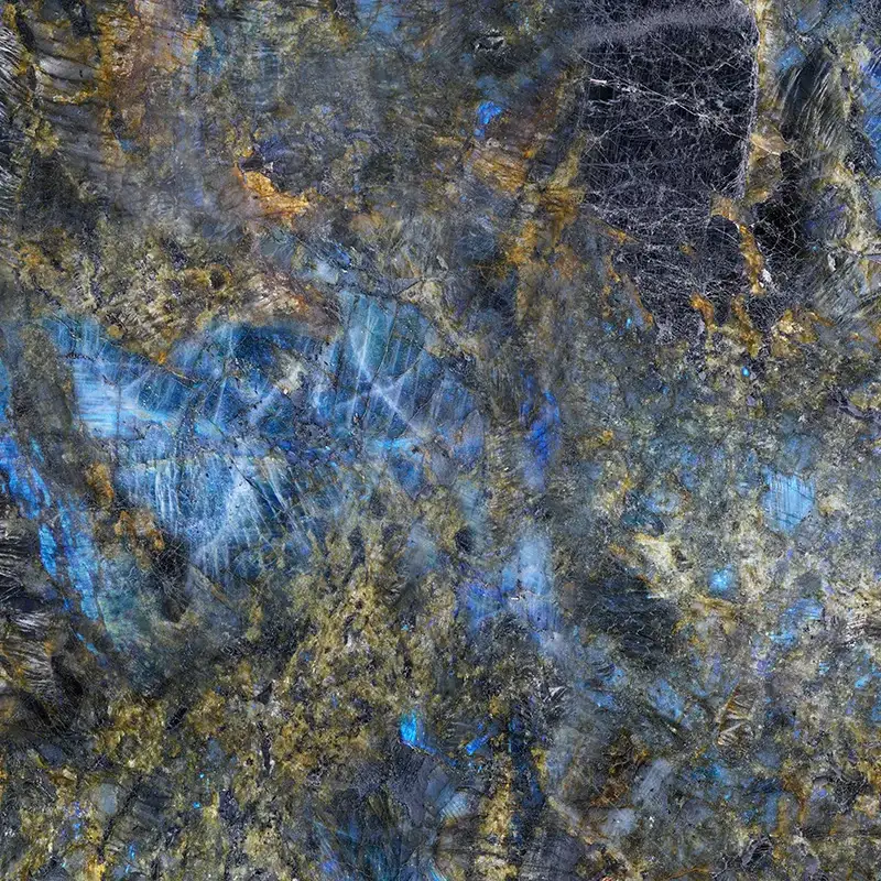 3. Pierre de luxe brésilienne bleue : base bleu profond + motif doré 3D en relief, luxueux et grandiose, adapté au luxe léger haut de gamme et au nouveau style chinois.